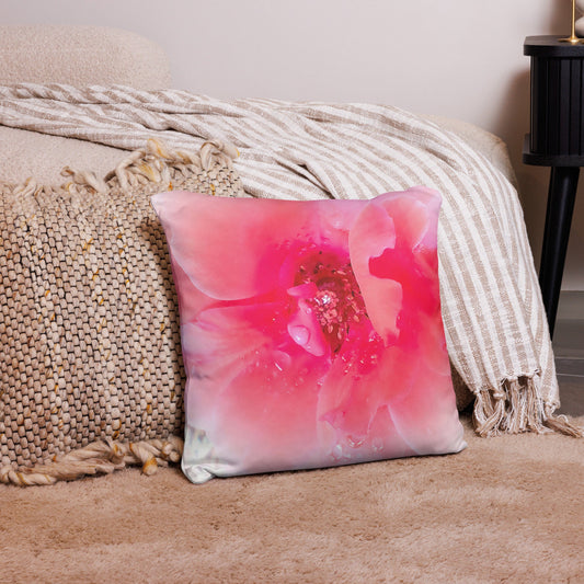 Raindrops on Coral Pink Roses Floral Throw Pillow