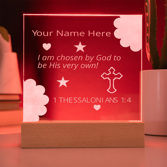 I Am Chosen Identity in Christ Bible Verses Personal Name Colorful Acrylic Transparent Photo Frame with LED Light