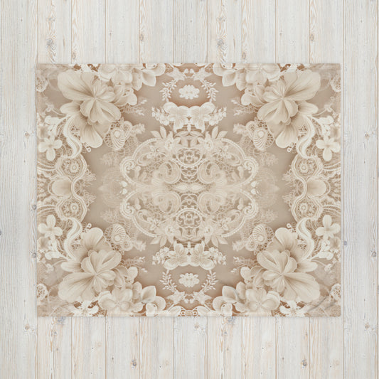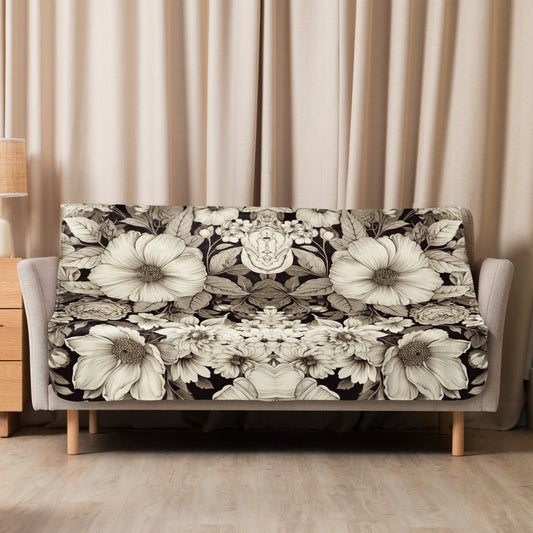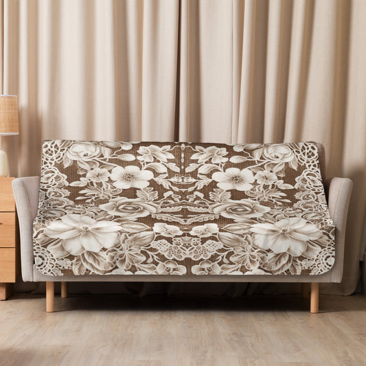 Neutral Colored Throw Blanket With Flowers For Modern and Vintage Decor