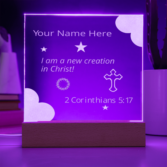 I Am A New Creation in Christ Identity in Christ Bible Verses On Engraved LED Acrylic Photo Frame