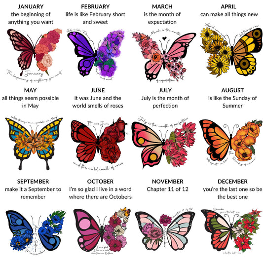 Personalized Name and Birth Month Flowering Butterfly Organic Cotton Tote Bag