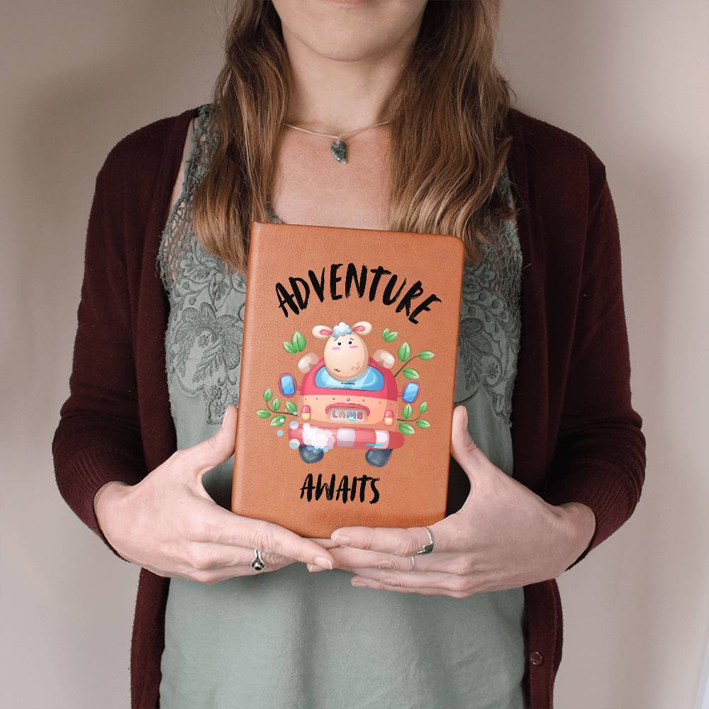 Get this beautiful Adventure Awaits Travel Journal Book Leather as a gift for traveler woman or for yourself. The cute lamb design adds a touch of humor and fun to this Travel Journal Log which is made out of vegan leather. Also makes a great graduation gift or Christmas present.
