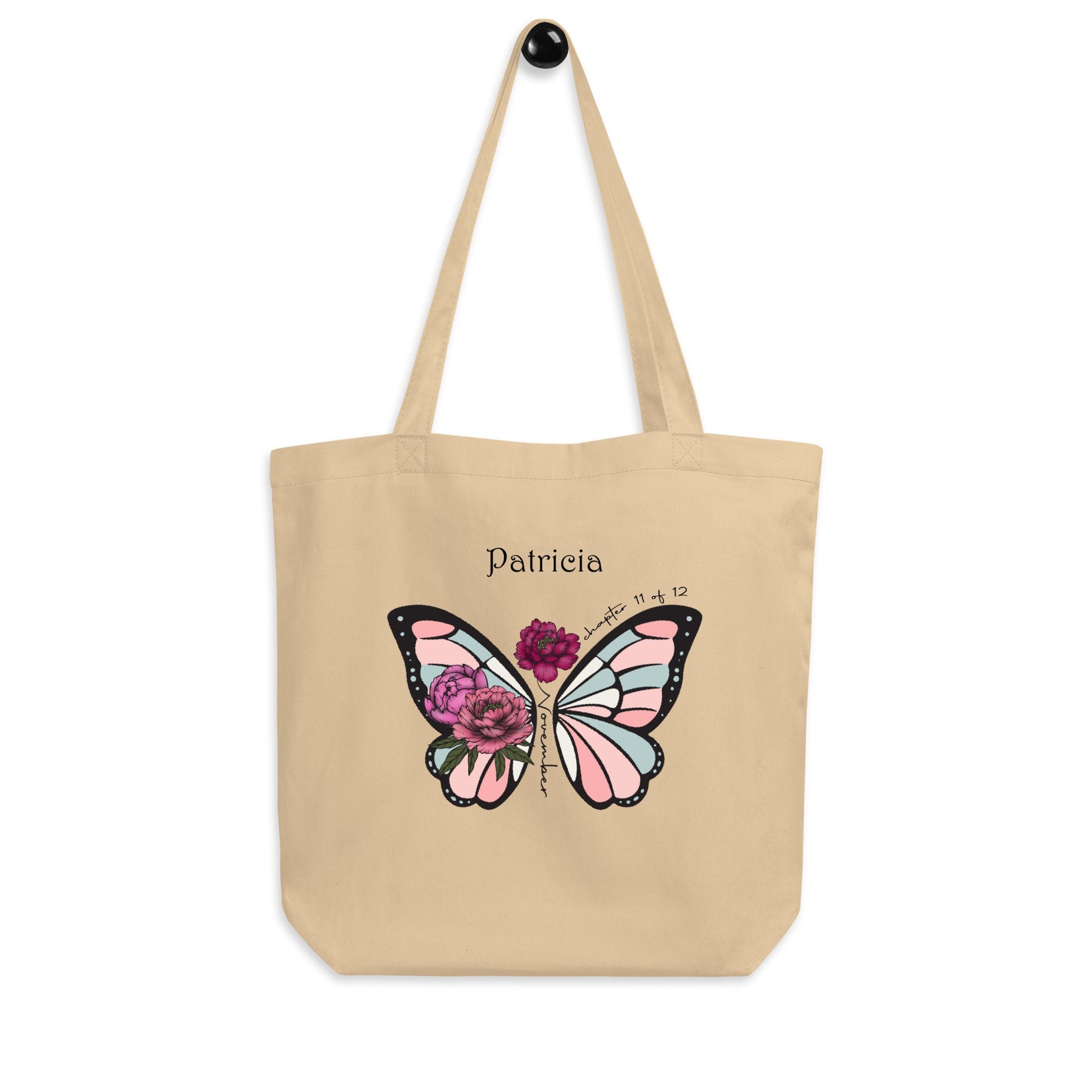 Personalized Name and Birth Month Flowering Butterfly Organic Cotton Tote Bag