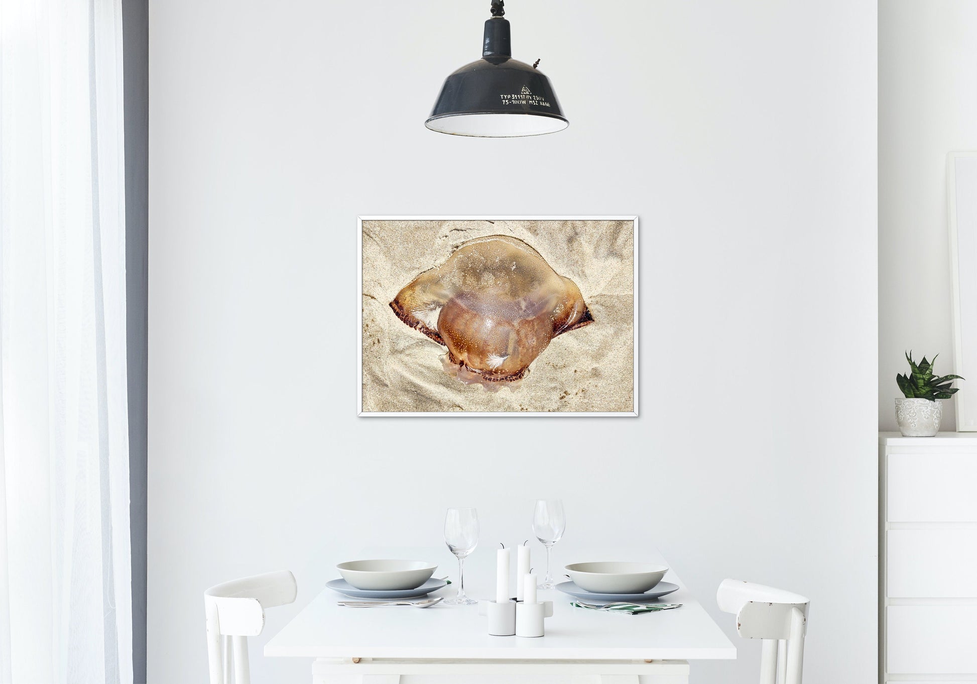 The photo of this Giant Jelly Fish on a Sandy Beach was taken on a Florida Coast Beach. Giant Jelly Fish were scattered all over the golden sand on the Eastern Coast of Florida near New Smyrna Beach on a sunny afternoon. This is one of two prints of the Giant Jelly I saw that day. This would make a great gift for beachcombers or anyone who loves the beach or nautical art.