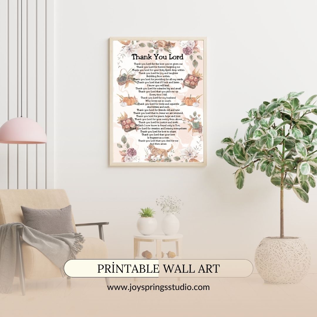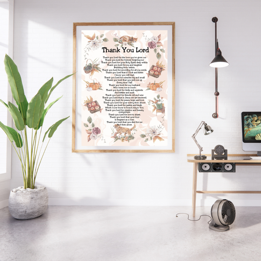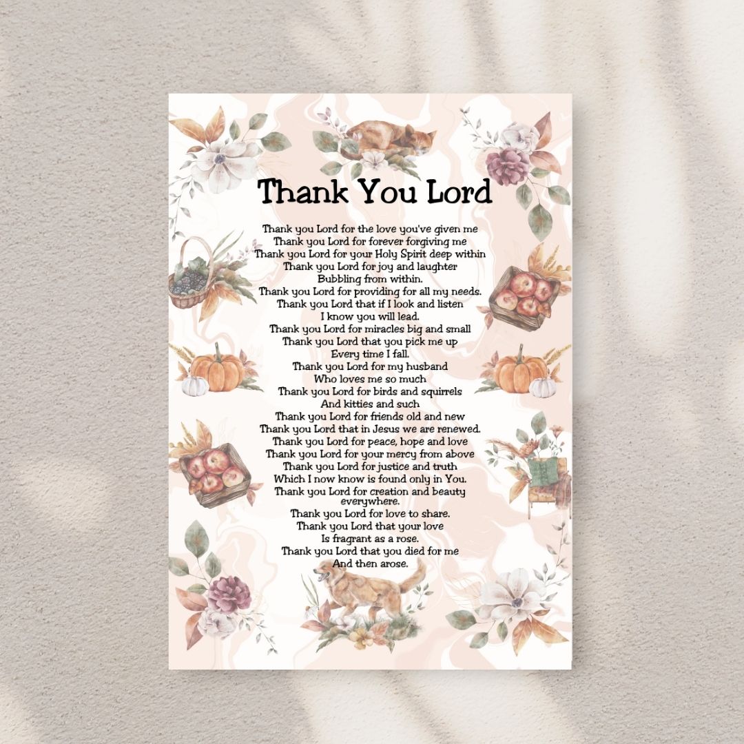 Thank You Lord Printable Thanksgiving Christian Prayer Poetry Artwork